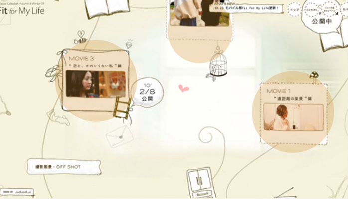 第二張圖中的不規則的面切割畫面讓頁面整體比較活潑可愛,和畫面的品牌牛奶的氣質非常吻合,這樣的不規則元素被穿插在整個畫面中。