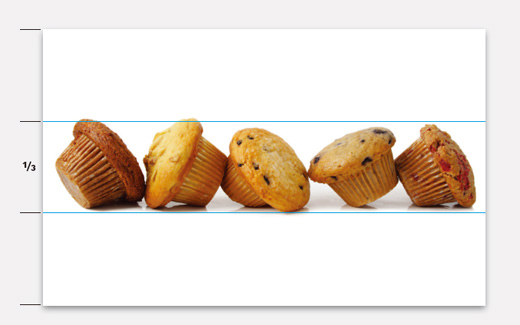 結束:右下區域在視覺上自然形成了一個“出口”,在這里放置標志,無論你的標志是什么顏色,放在這里總能夠產生效果,不用太大,但卻具有一種權威的感覺。記住你的顧客只是對你的產品有興趣,而標志的作用只是起到“這些美味的東西是誰做的”這個信息。