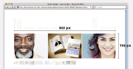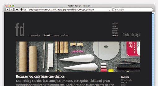 很多網頁都有一個醒目的大橫幅區域,但設計上大都千篇一律,如果你訪問FACTOR DESIGN網站,你會發現,該區域的變化比你想象中要豐富得多――并不是通過特效,而是通過版面設計,他們對橫幅的間隔設計讓你在任何平面設計中都能獲得靈感。